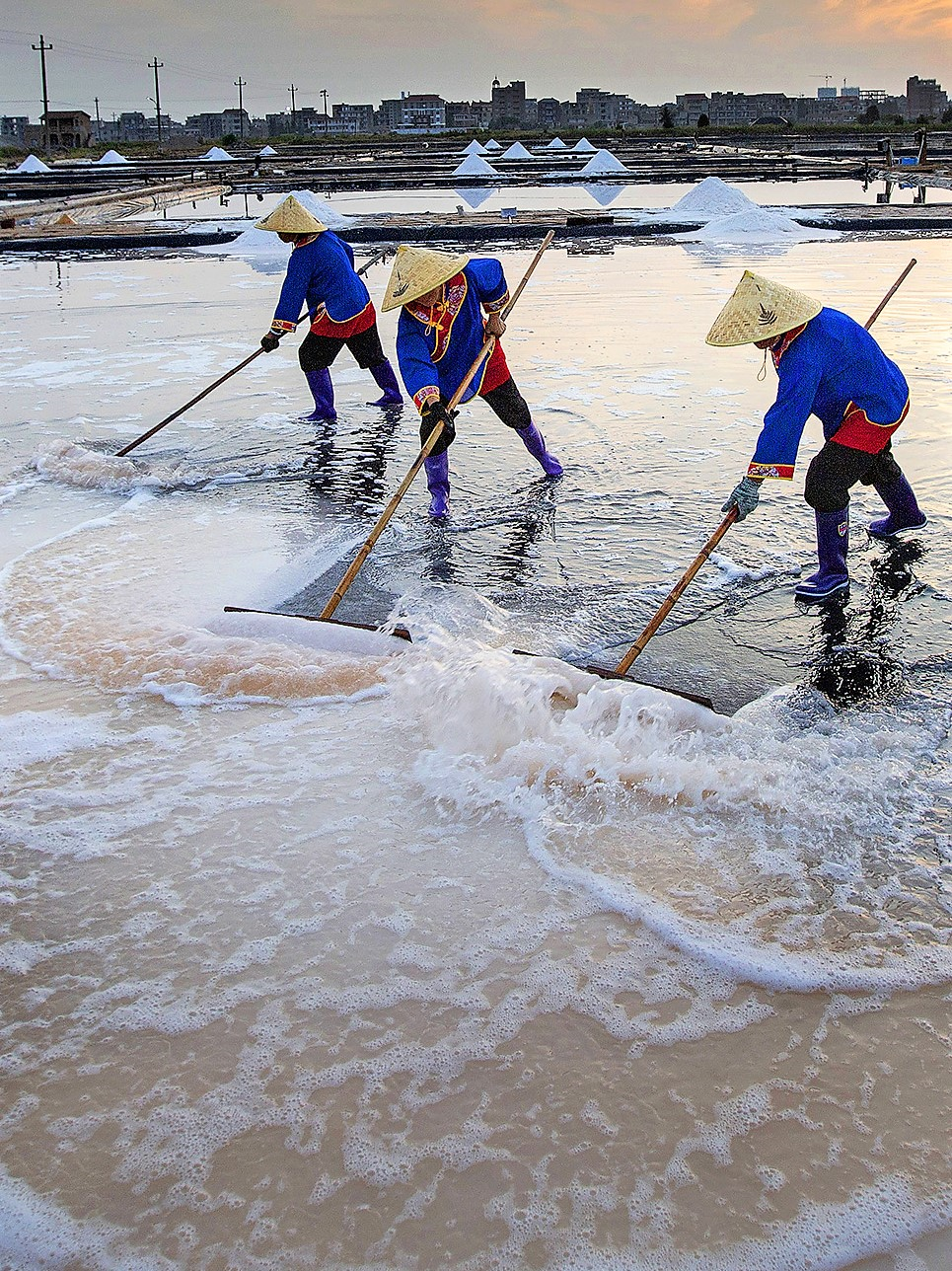 “七步走水”“分段结晶”,时至今日,仍遵循传承740余年的“日晒盐法”,打造匠心好盐。(摄影/陈英)