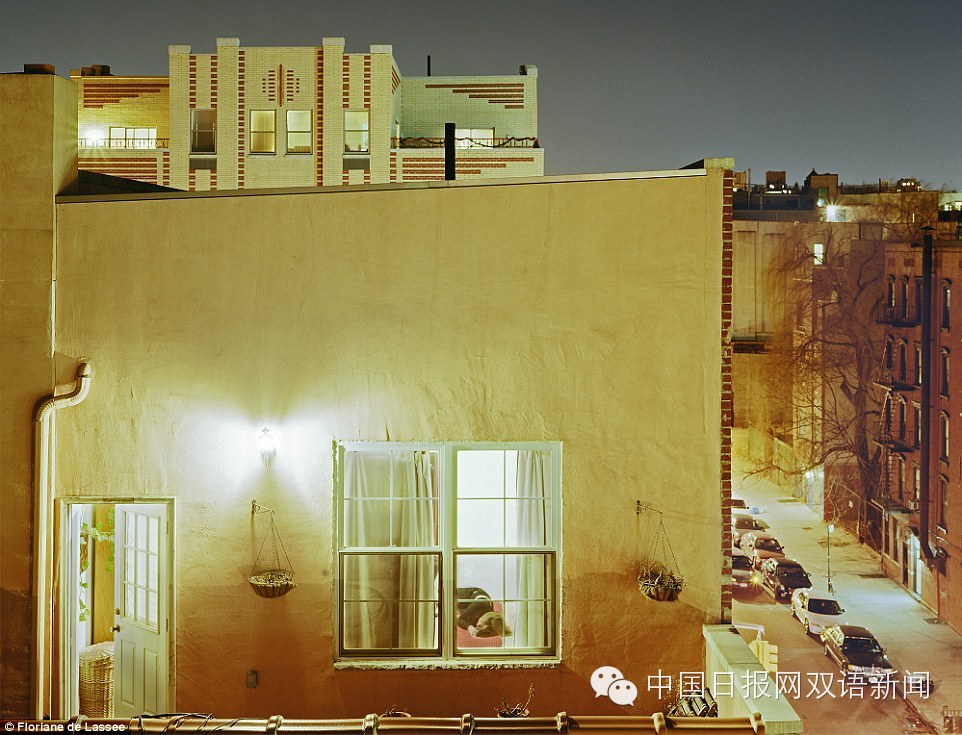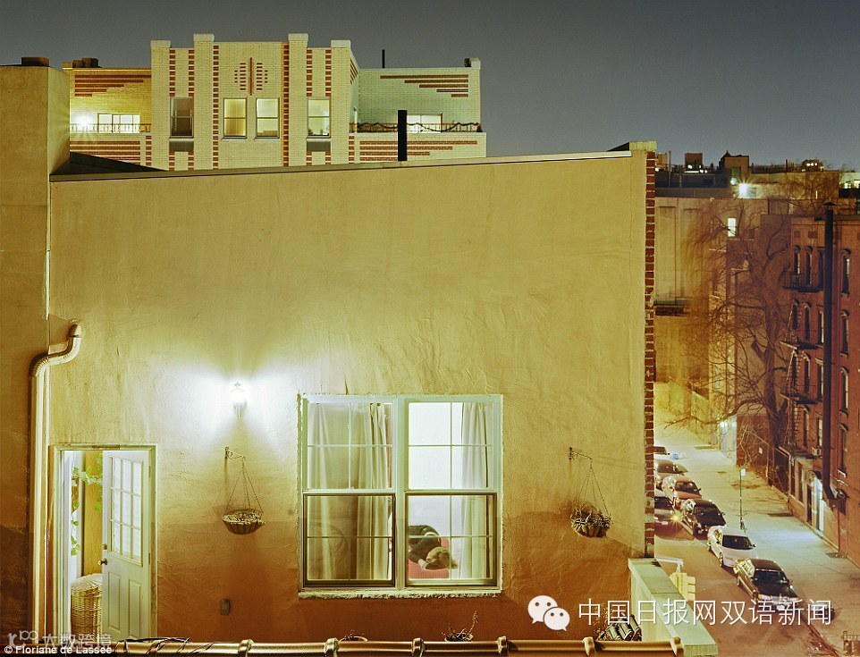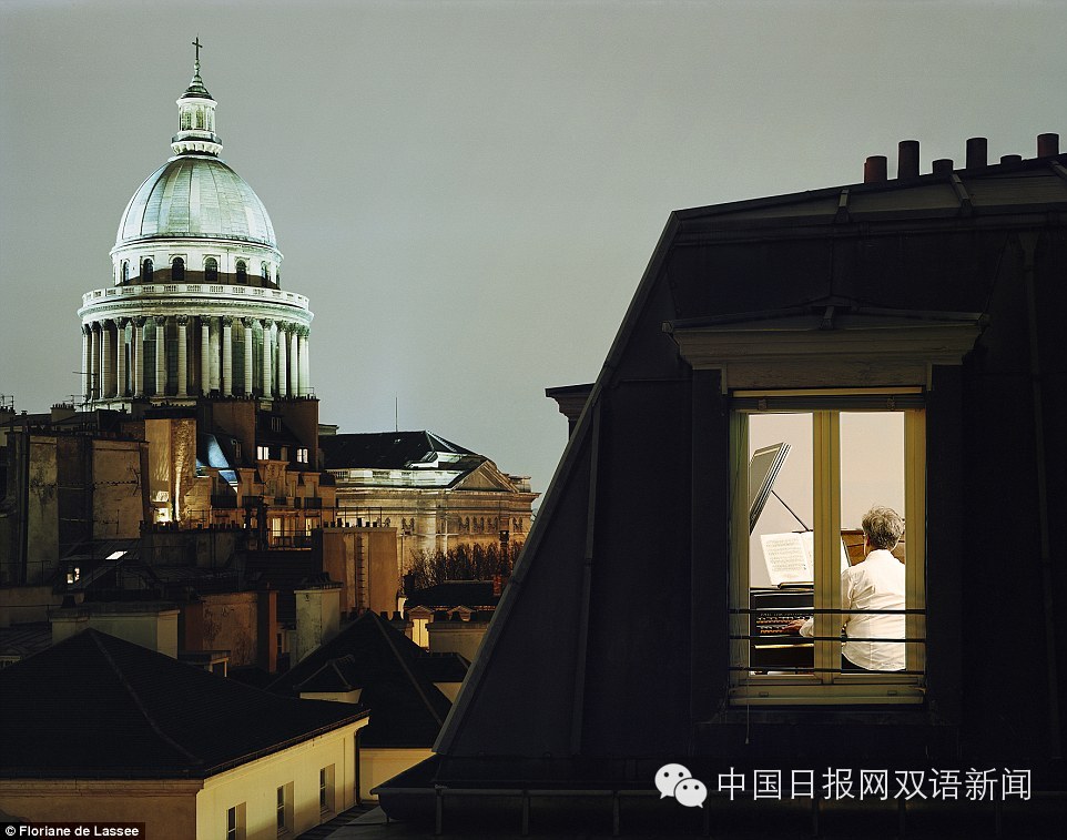 伦敦,法国摄影师弗罗丽安•德•拉塞捕捉到了对面窗口一个男人正在公寓里练琴。