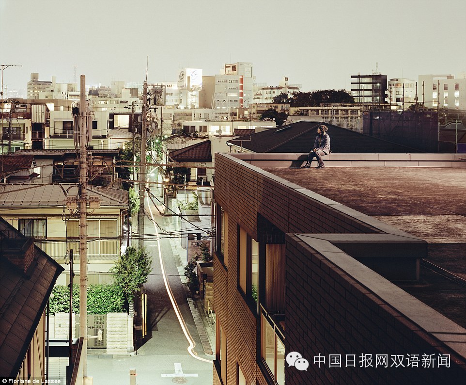 这张照片未说明具体拍摄地点,照片中的女孩正在屋顶上眺望天空,似乎德•拉塞也同在这个屋顶拍下照片。