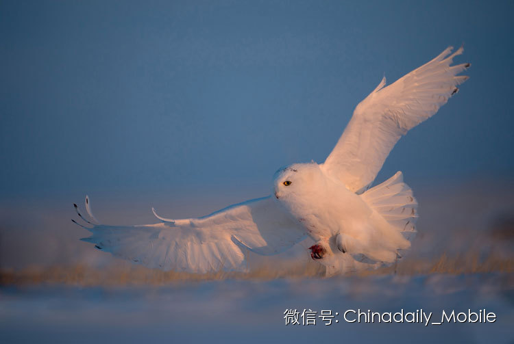 冬天,在内蒙古呼伦贝尔草原深处拍摄雪鸮,既艰辛,又快乐。当你和机警凶猛的大白猫和睦相处的时候,内心的愉悦会温暖冰凉的肢体;当你在取景器里看到大白猫的卖萌憨态,欣喜与爱怜之心会油然而生。(摄影师:徐永春)