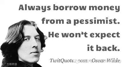 他嘲讽悲观主义者。“借钱就要向悲观主义者借,因为他们不会期待你还钱。”(Always borrow money from a pessimist. He won't expect it back.)