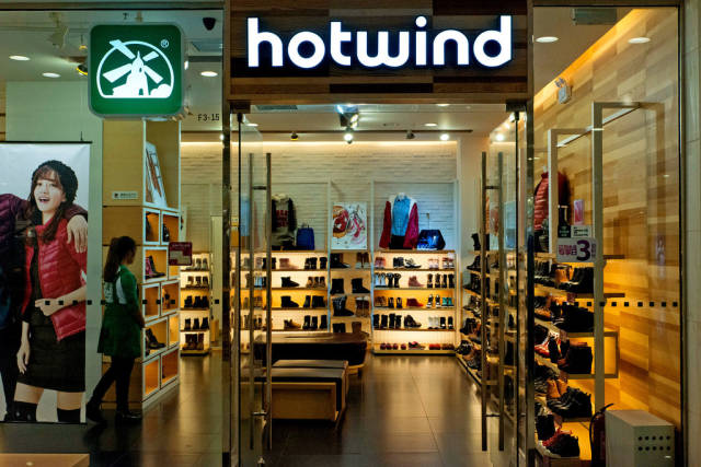 Hotwind, another play on English words, is a shoe-store chain.同样用英文玩文字游戏的hotwind是一家卖鞋的连锁店。