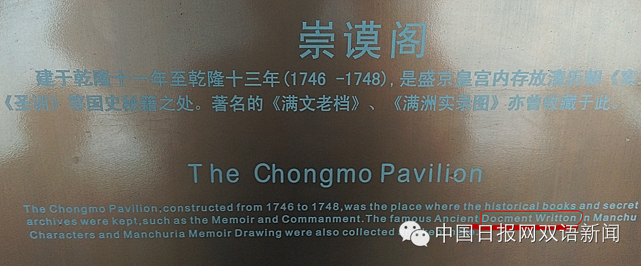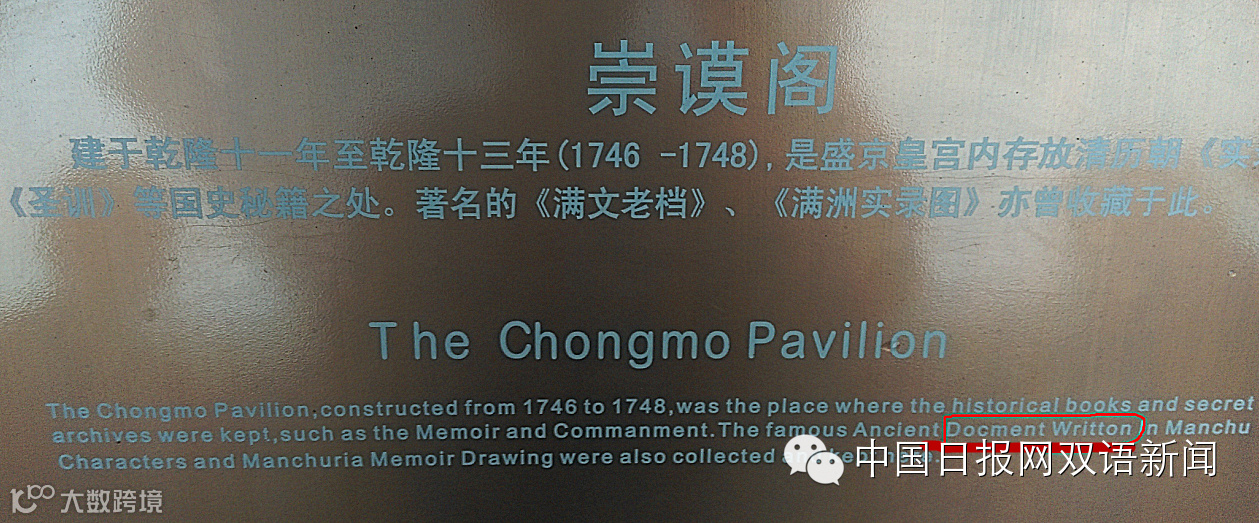 堂堂沈阳市故宫博物院,连续两词拼写错误...↓