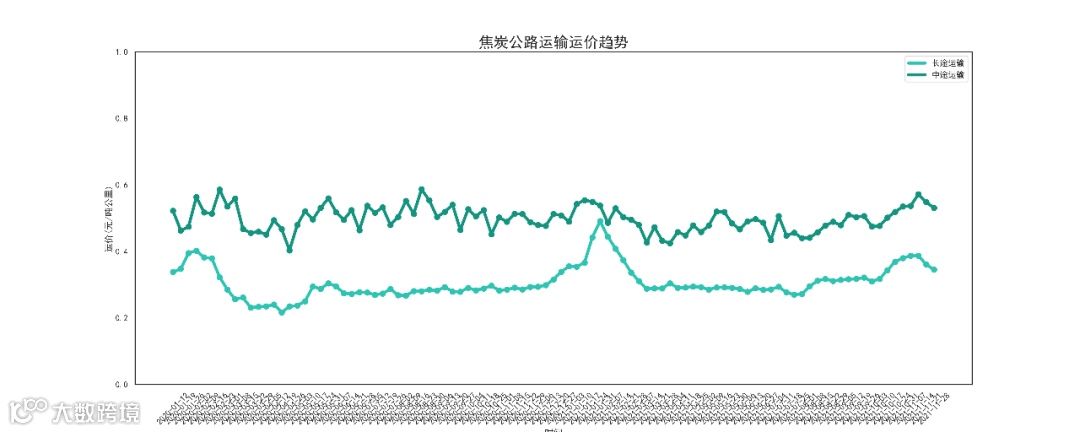 本周焦炭长途运输运价为0.346元/吨公里,较上周下跌了0.016元/吨公里,跌幅为4.47%;中途运输运价为0.515元/吨公里,较上周下跌了0.049元/吨公里,跌幅为8.66% 。