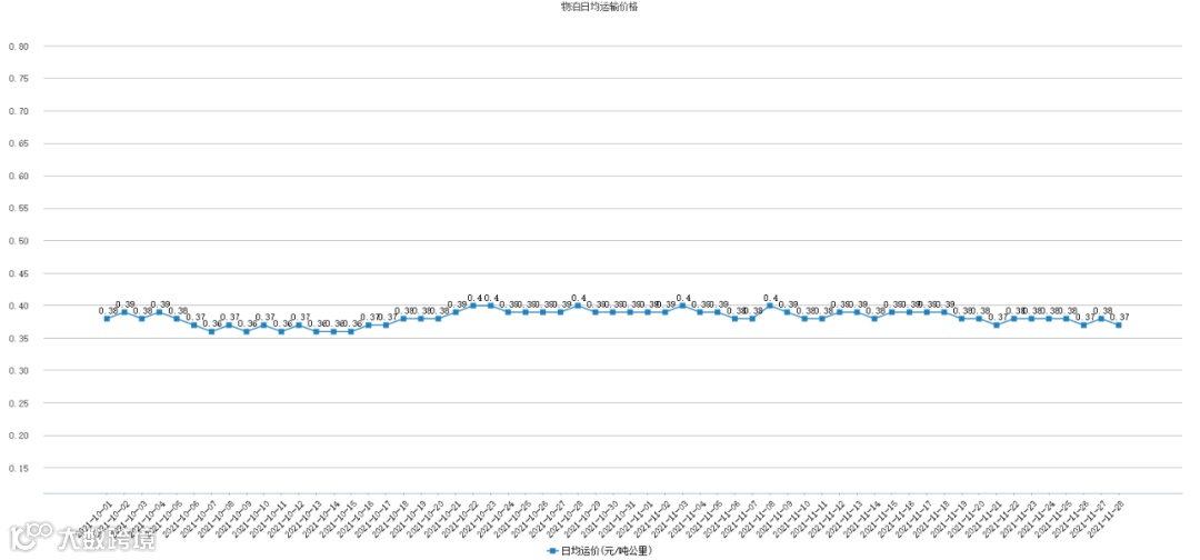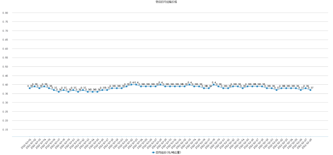 11月22号、11月23号、11月24号、11月25号为0.38元/吨公里,11月26号为0.37元/吨公里、11月27号为0.38元/吨公里,11月28号为0.37元/吨公里。