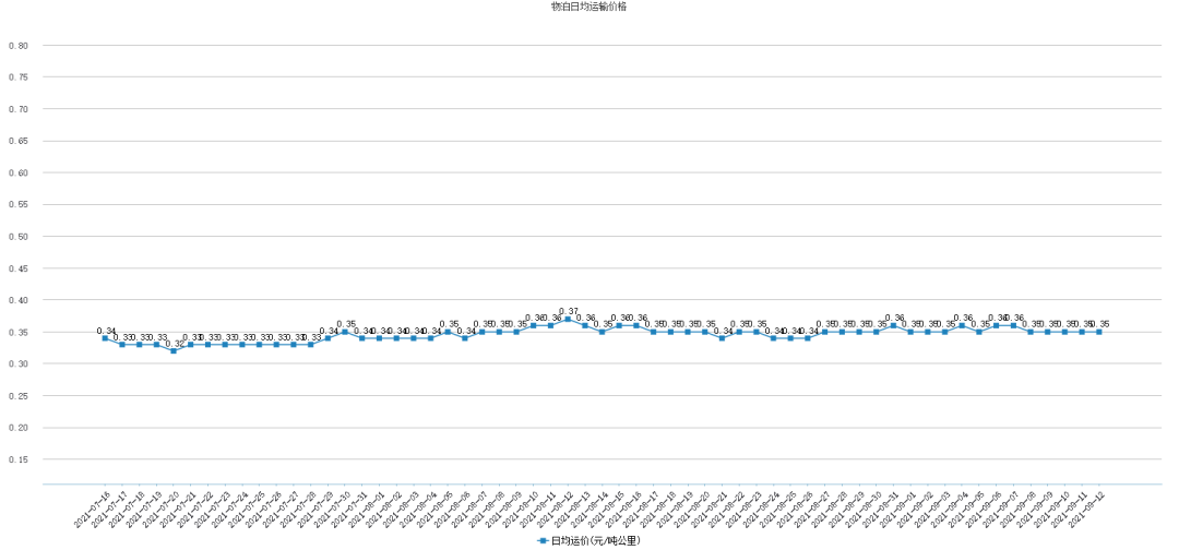 9月6号、9月7号为0.36元/吨公里,9月8号、9月9号、9月10号、9月11号、9月12号为0.35元/吨公里。