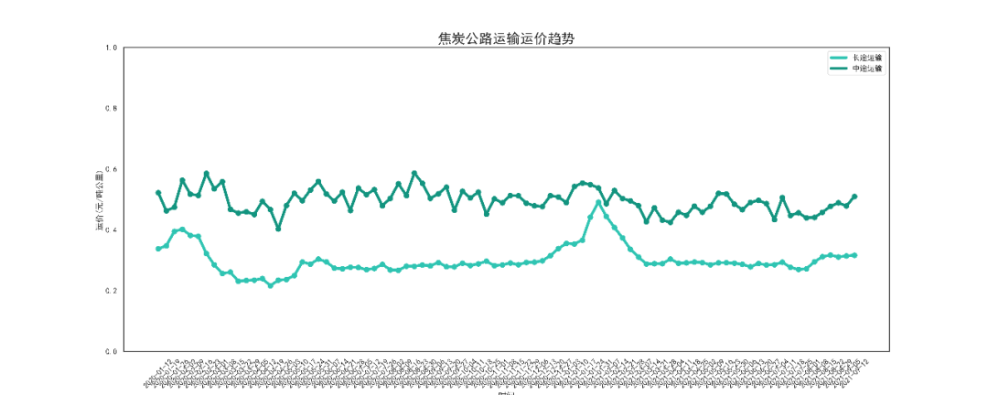 本周焦炭长途运输运价为0.316元/吨公里,较上周上涨了0.002元/吨公里,涨幅为0.61%;中途运输运价为0.504元/吨公里,较上周上涨0.022元/吨公里,涨幅为4.73% 。