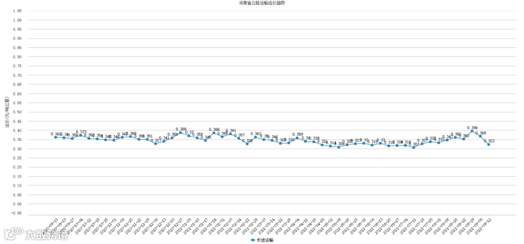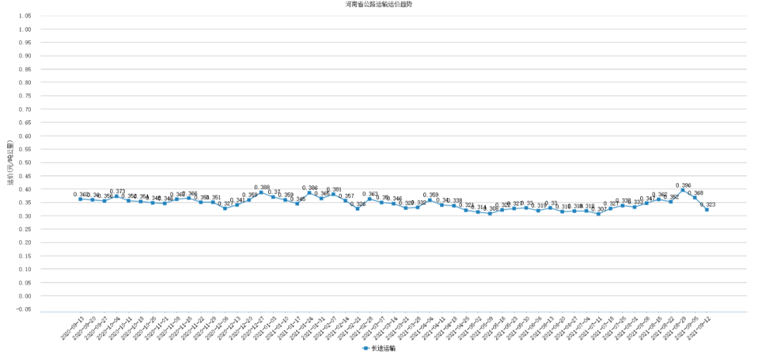 本周河南省公路运输运价为0.323元/吨公里,较上周下跌了0.045元/吨公里,跌幅为12.23%。