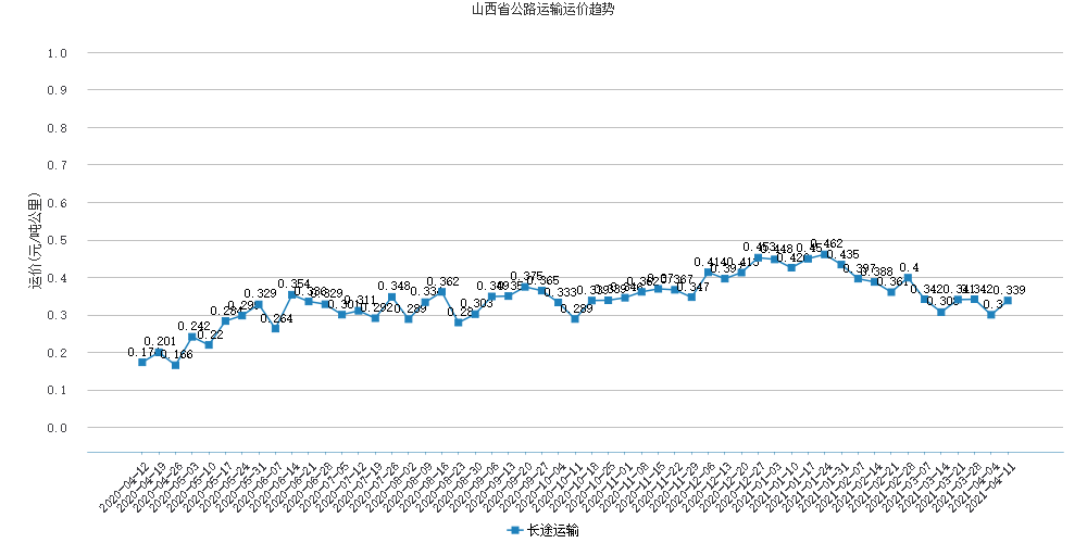 本周山西省公路运输运价为0.339元/吨公里,较上周上涨了0.039元/吨公里,上升了13%。