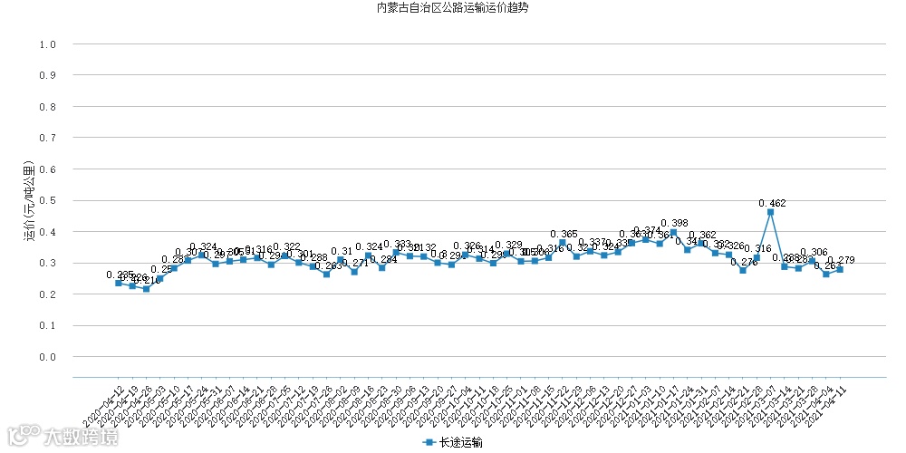 本周内蒙古公路运输运价为0.279元/吨公里,较上周上涨了0.016元/吨公里,上升6.1%。