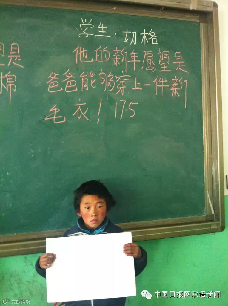 也许,对你来说,这个世界很无奈,物质的富足越来越难带给你精神的满足。但是,对他们来说,外面的世界却很精彩。他们是一群青海的小朋友,简单、善良,在心底藏着小小的新年心愿。中国日报手机端携手青海玉树曲麻莱完二小推出年终策划"曲麻莱小学生的愿望盒",近百个贫困小学生把他们的新年愿望一一放进了中国日报为其提供的愿望盒中,你愿意认领一个愿望,献出一份爱心吗?请点击文章最下方"阅读原文"。
