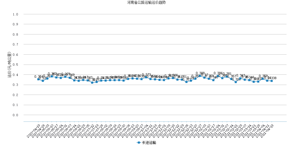 本周河南省公路运输运价为0.338元/吨公里,较上周下降了0.002元/吨公里,下跌0.6%。