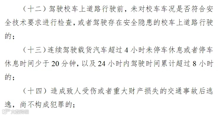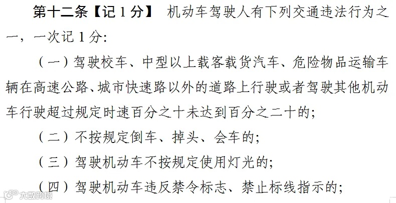 该办法规定,若出现以下违法行为,从扣12分变成扣9分