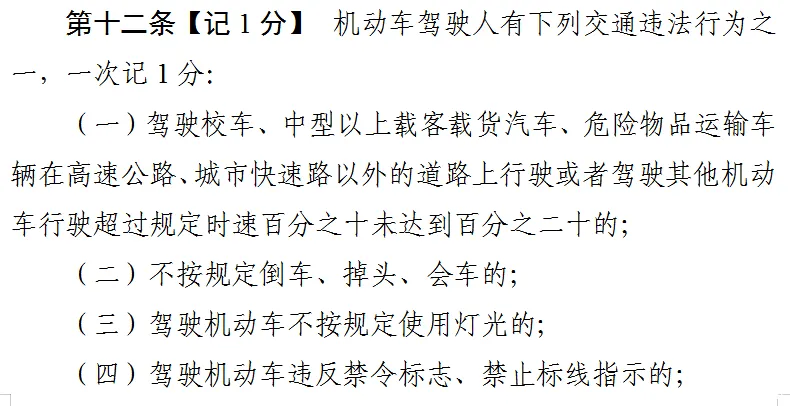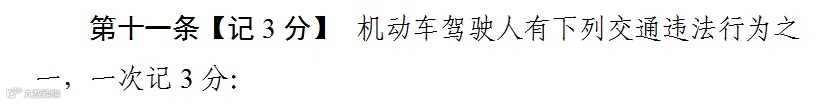 新的《办法》规定:以下违法行为从扣3分变成扣1分