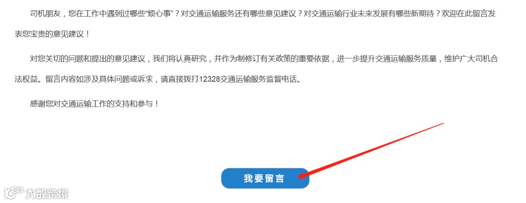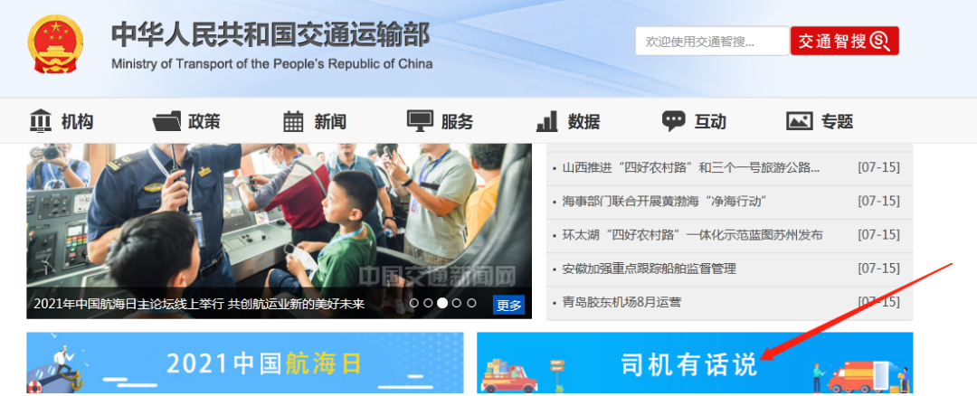 目前,交通运输部在官网首页醒目的位置设立了一个版块——司机有话说,大家有什么想说的都可以进行反馈。