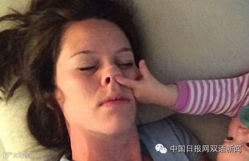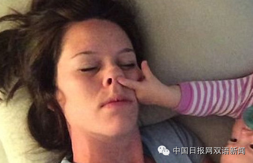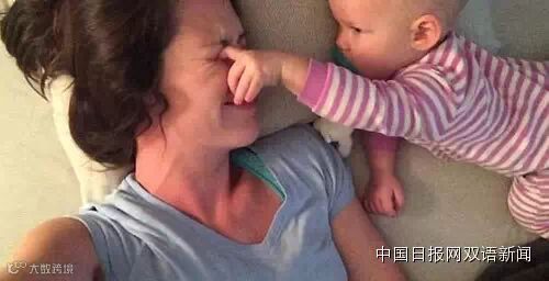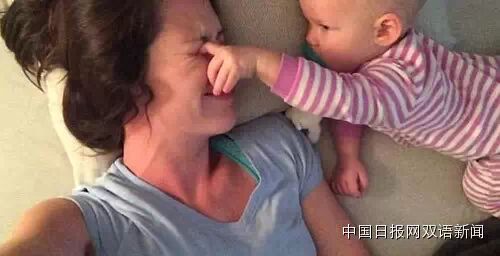 视频中的小婴儿埃利亚用了很多种方法,比如在床上爬行打滚,不断拍打妈妈的下巴,戳妈妈的鼻孔和眼睛,拉扯妈妈的头发以及躺在妈妈脸上。