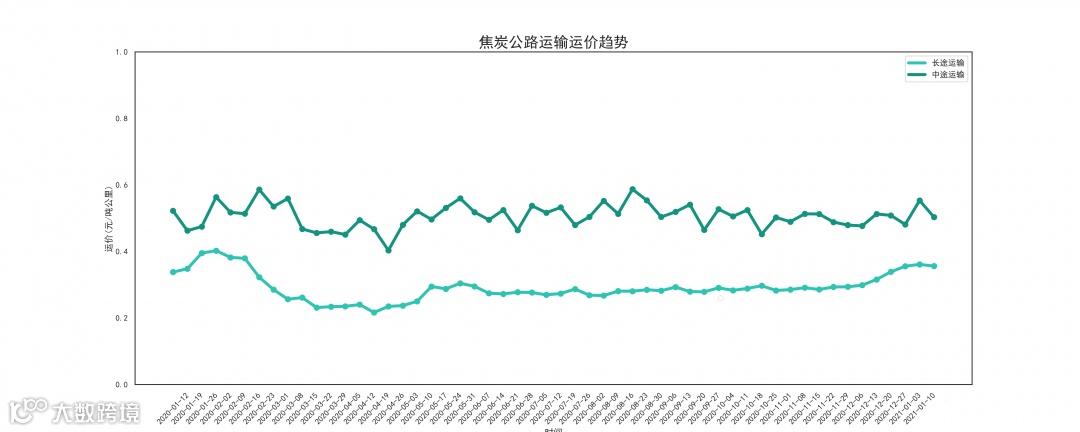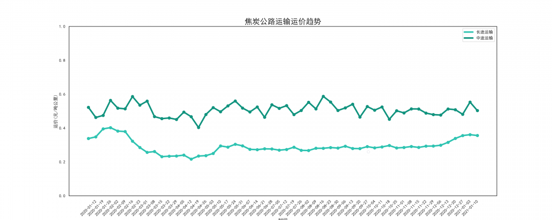 本周焦炭公路运输运价为0.356元/吨公里,较上周有了小小的回落,总体运价还是属于较高水平,中途运输运价下调幅度明显。