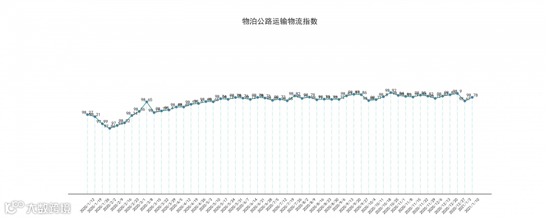 根据物泊科技数据显示,本周物泊科技公路运输物流指数为98.78,在上周物流指数回落后又马上反弹,预计未来一周会有小幅度的上升。