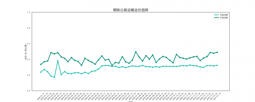 本周钢铁公路长途运输运价为0.283元/吨公里,钢铁长途运输价格已经保持了一个月以上的走高,与钢材价格上升,国家地产行业发展,政府公共事业发展,有着千丝万缕的关系。