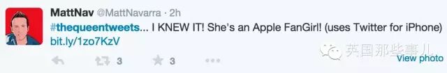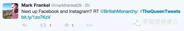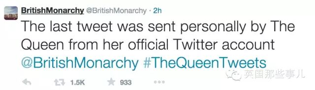"我们对能为女王的第一条微博出力赶到自豪。。。"