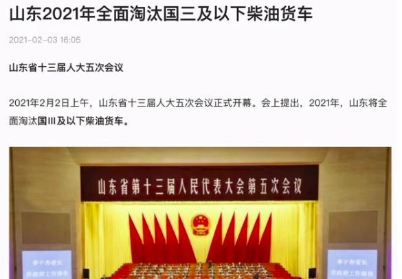 其实早在年初,山东表示2021年全面淘汰国三及以下柴油货车,多地国三车不予年检。而此前河南郑州、安徽亳州、河北秦皇岛、山东德州等多地城区限行国四。湖北武汉130家企业拒绝国四及以下货车进厂、山东日照多厂及港口禁止国四及以下车辆进入……