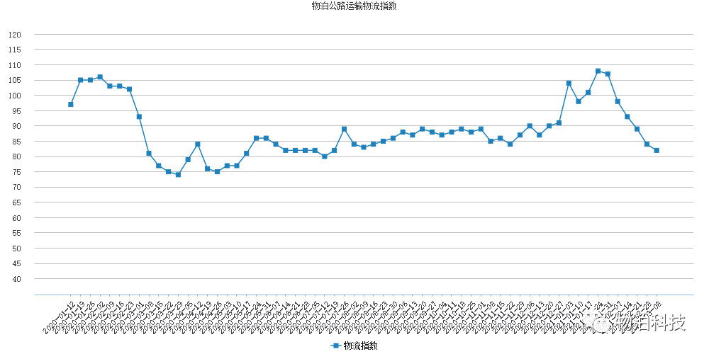 本周物泊公路运输物流指数为82,较上周下跌4.6%。