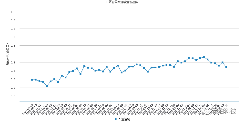 本周山西省公路运输运价为0.3421元/吨公里,较上周下跌了0.0574元/吨公里,下降14.4%。