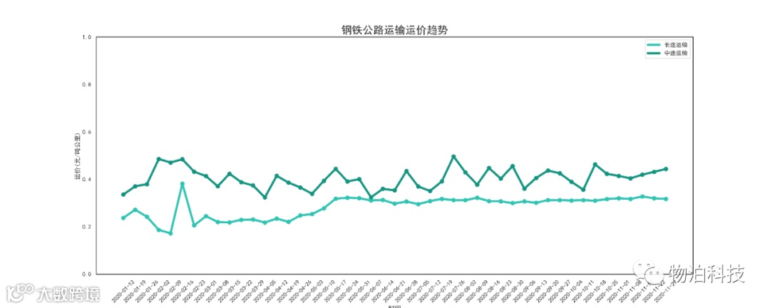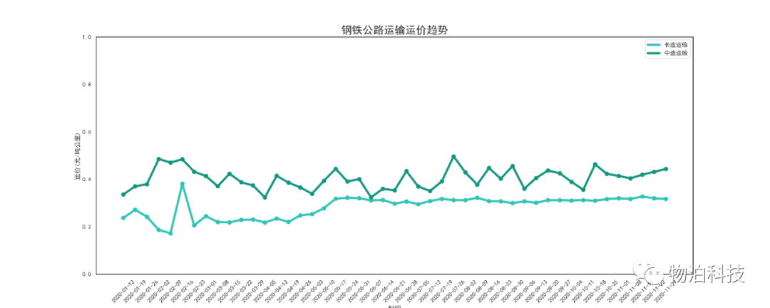 钢铁中途运输价格上涨,长途运输价格下跌。