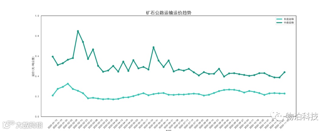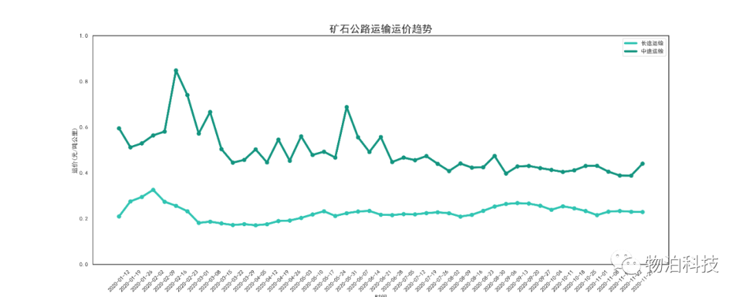 矿石中途运输涨幅较为明显,长途运输价格基本稳定。