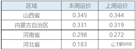 本周物泊科技主要省份公路运输运价数据显示,内蒙、山西、河南、河北省内公路运输价格全线上涨。
