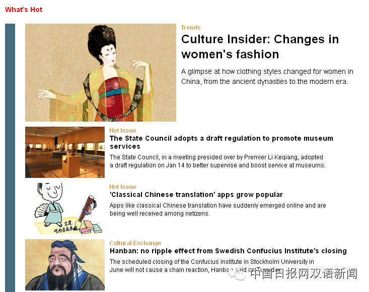 Chinaculture.org is the first English website dedicated to cultural exchange. It is also a platform to share the ministry’s policies and provide suggestions on international cultural exchanges. In 2014, the website was named the most international website among all Chinese government websites that publish in foreign languages.