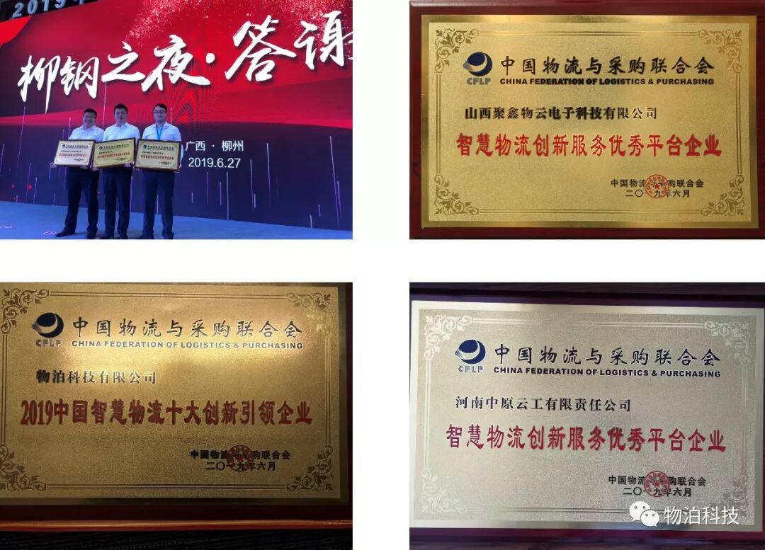 物泊科技凭借在物流供应链领域的创新模式及智能化实践成果荣获“2019中国智慧物流十大创新引领企业 ”。此外,物泊旗下全资子公司——山西聚鑫物云电子科技有限公司和河南中原云工有限责任公司分别荣获“智慧物流创新服务优秀平台企业”两项大奖。