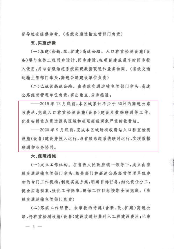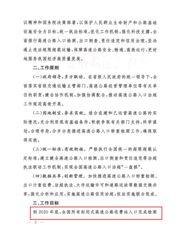 1、19年12月底,区域内50%以上高速入口完成称重设备安装;