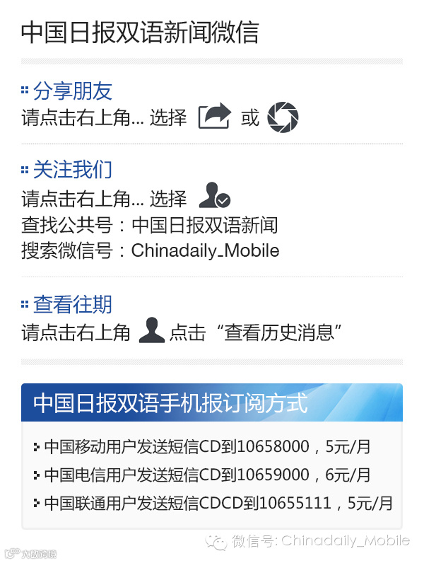 内容来源:ChinaDaily双语手机报(回复“免费体验”查看免费阅读30天使用方式