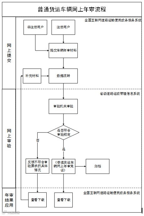 第六条 道路货物运输经营者可通过全国互联网道路运输便民政务服务系统办理全国普通货运车辆网上年审业务。