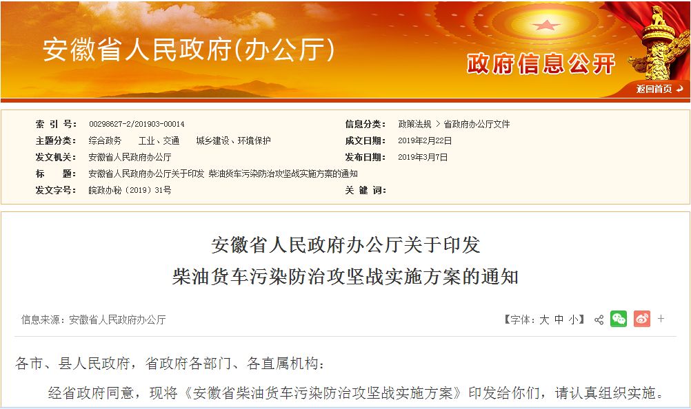 此外,安徽省将强化机动车环保信息公开,机动车生产、进口企业依法依规公开排放检验、污染控制技术和汽车尾气排放相关的维修技术信息。