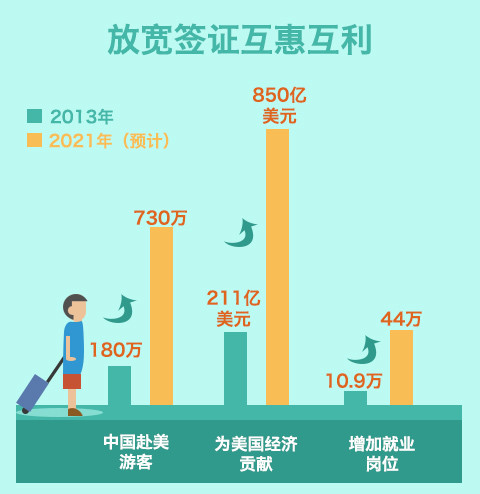 放宽签证对中美两国都有利,随着越来越多的人互通往来,中美两国人民也会有越来越多的钱可以赚。