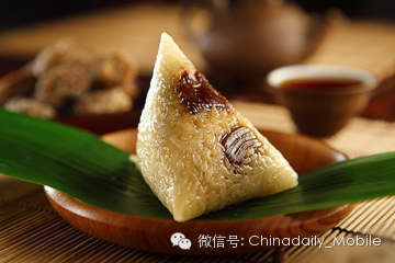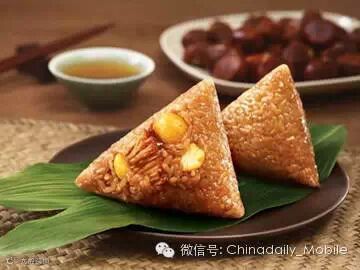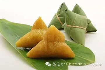 粽子,又叫"角黍"、"筒粽",英文也称为rice dumplings或sticky rice dumplings,多以糯米(glutinous rice)制成,内包馅料(fillings),外裹粽叶,通常为竹叶(bamboo leaves)或芦苇叶(reed leaves),黏而不腻,粽叶清香。
