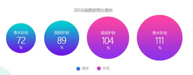 透过2015~2016年大数据对比分析可见,在护肤美颜方面,男性用户与女性用户的人均消费差距已从2015年的26.6元减少到了13.7元。但两性在品类偏好上仍存在差异,男性更重视面部护肤,面部护肤消费额增长高于彩妆;而女性消费者香水彩妆的消费额同比增长更高。