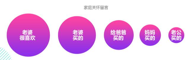 另外,赠送个护美妆用品正在成为表达家庭关怀的方式,这其中“老婆”的角色很重要。在5大关键字中,“老婆很喜欢”、“老婆买的”占据了前两位。