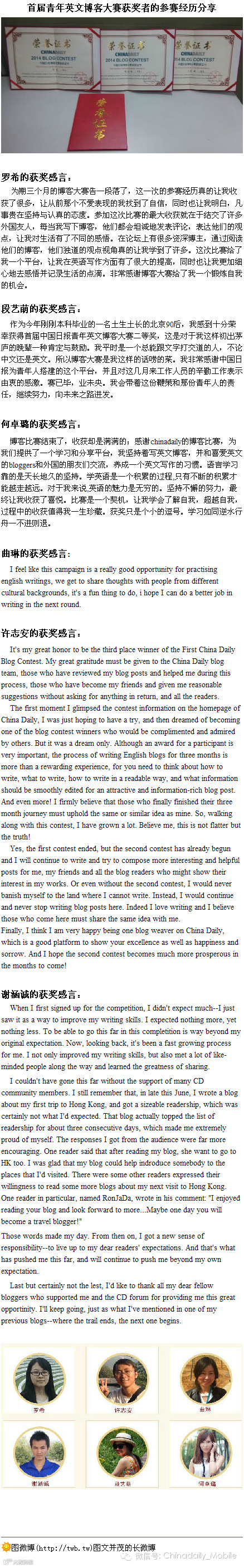 首届青年博客大赛的获奖者们现身说法,与你一起分享他们的参赛心得,你一定不能错过!