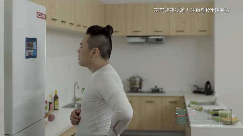 首先,冰箱收集了测试者的体测报告,此时能看到他的肚子非常突出。根据冰箱为他定制的菜单,一日三餐都以新鲜的瓜果蔬菜为主。