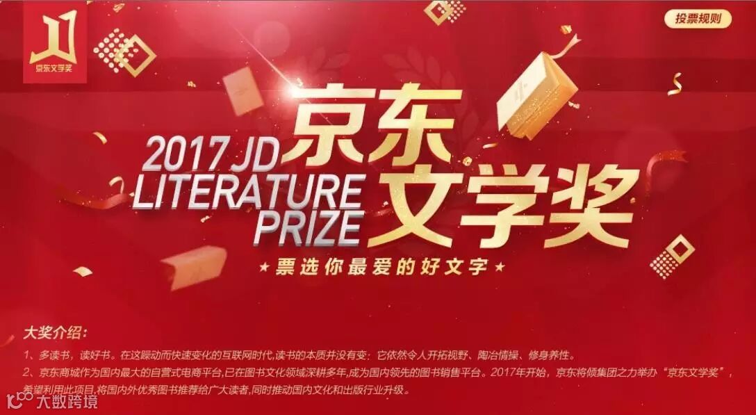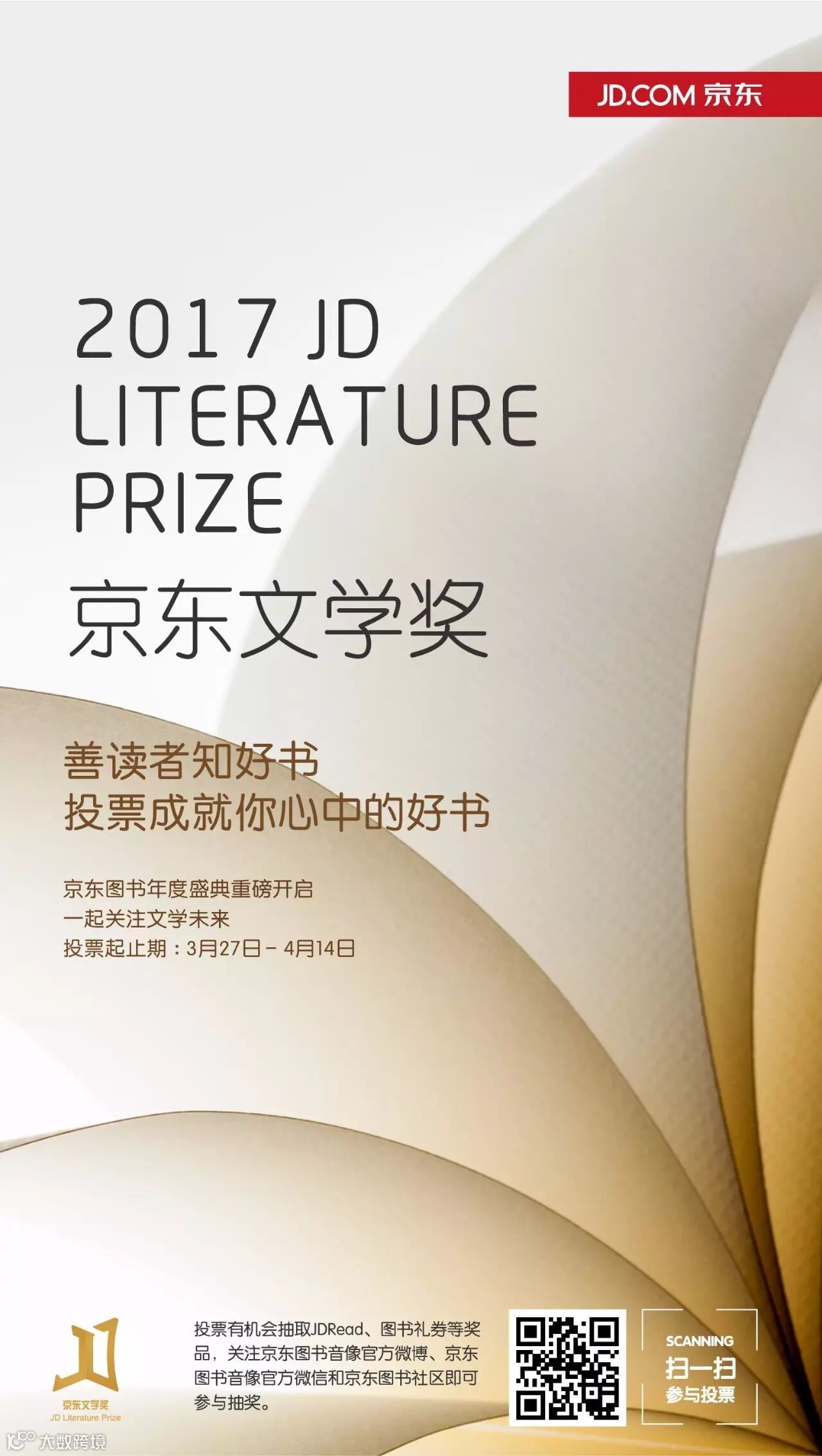 即日起至2017年4月14日23:59:59,京东文学奖开启大众投票评选,面向全社会发起邀请,号召热爱文学的读者参与到京东文学奖的评选中,为心目中的好书投票。