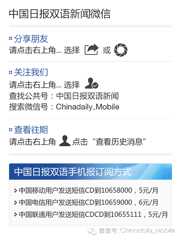 内容来源:ChinaDaily双语手机报(回复"免费体验"查看免费阅读30天使用方式)