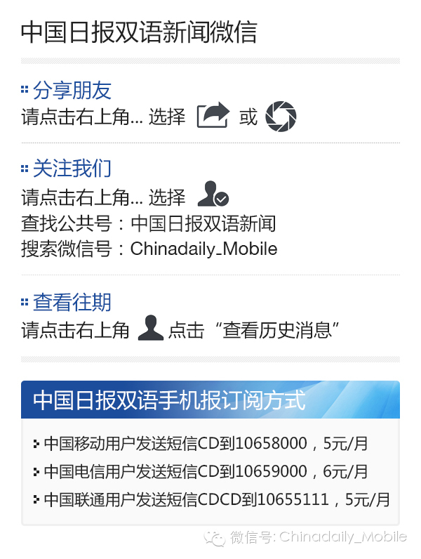 内容来源:Chinadaily双语手机报(回复“免费体验”查看免费阅读30天使用方式)