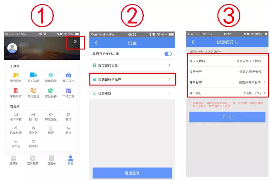 在旧版系统中,绑定银行卡为“我的”下面功能,在系统升级后,此功能位于右上角的图标内。