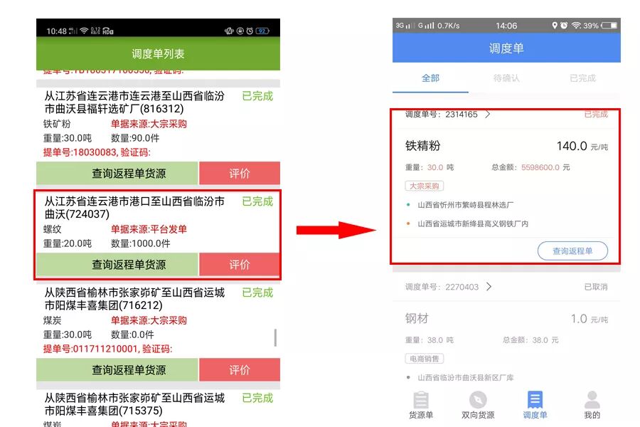 调度单是为方便司机查看所承运过的货源而有的功能,新版较旧版相比并无功能上的更改,仅在于页面更干净整洁。