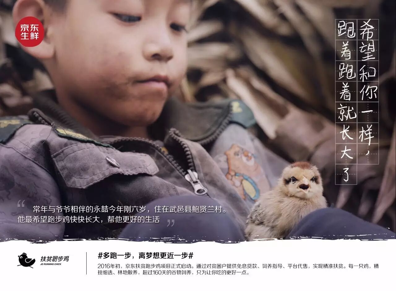 京东扶贫跑步鸡项目源于刘强东针对电商精准扶贫的一个构想。他的初衷是,将绿色食品安全与精准扶贫相结合,通过农户全天然、生态化养殖鸡苗,为消费者提供更有保障鸡肉的同时帮助农户致富。今年年初,京东专门成立“扶贫跑步鸡项目小组”,选点在国家扶贫重点县——河北武邑,为所辖村里的老、病、残等贫困农户,提供统一培育的太行柴鸡鸡苗,并全程进行散养柴鸡的养殖技术培训和指导。贫困农户按照京东养殖标准,将跑步鸡养满160天后,由京东生鲜经过标准化筛选来对农户养殖的鸡进行收购,并借助京东平台的优势,对从收购到销售、配送到家的所有环节直接把控,“产-养-销”全产业链闭环的建立确保了扶贫跑步鸡的品质。“双11”前夕,首批扶贫跑步鸡已上线开售,近百名贫困户因此受益,每个贫困户平均可获得3000元收益。