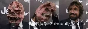 33.为了吓唬记者真的戴上了恐怖的头套。