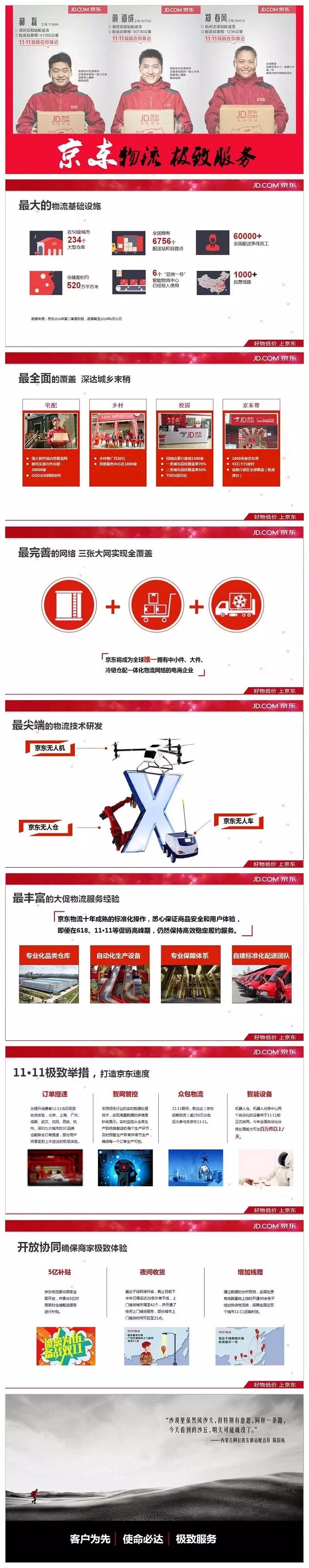 京东物流从基础的运营保障、对第三方物流商家的支持及智慧物流的积极布局等方面推出的一系列举措,将再次拉升整个物流行业的服务标准,建立新的“双11”物流服务标杆,刷新消费者对“双11”物流的全面体验。